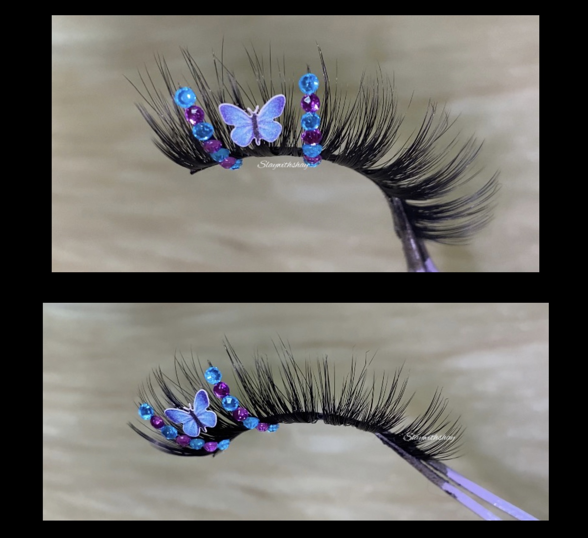 Baby blue and purple butterfly rhinestones