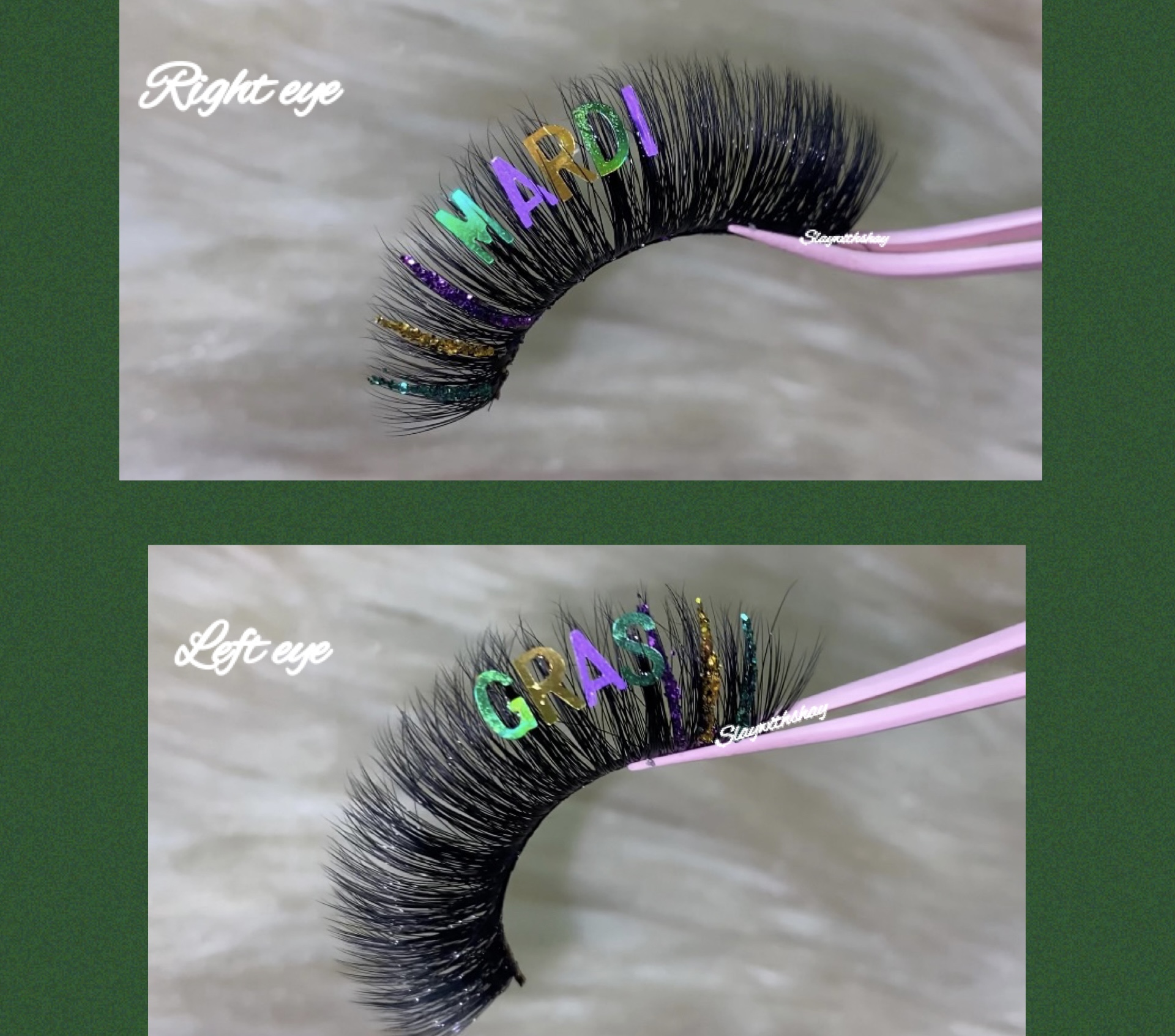 RIGHT EYE: Mardi, LEFT EYE- Gras